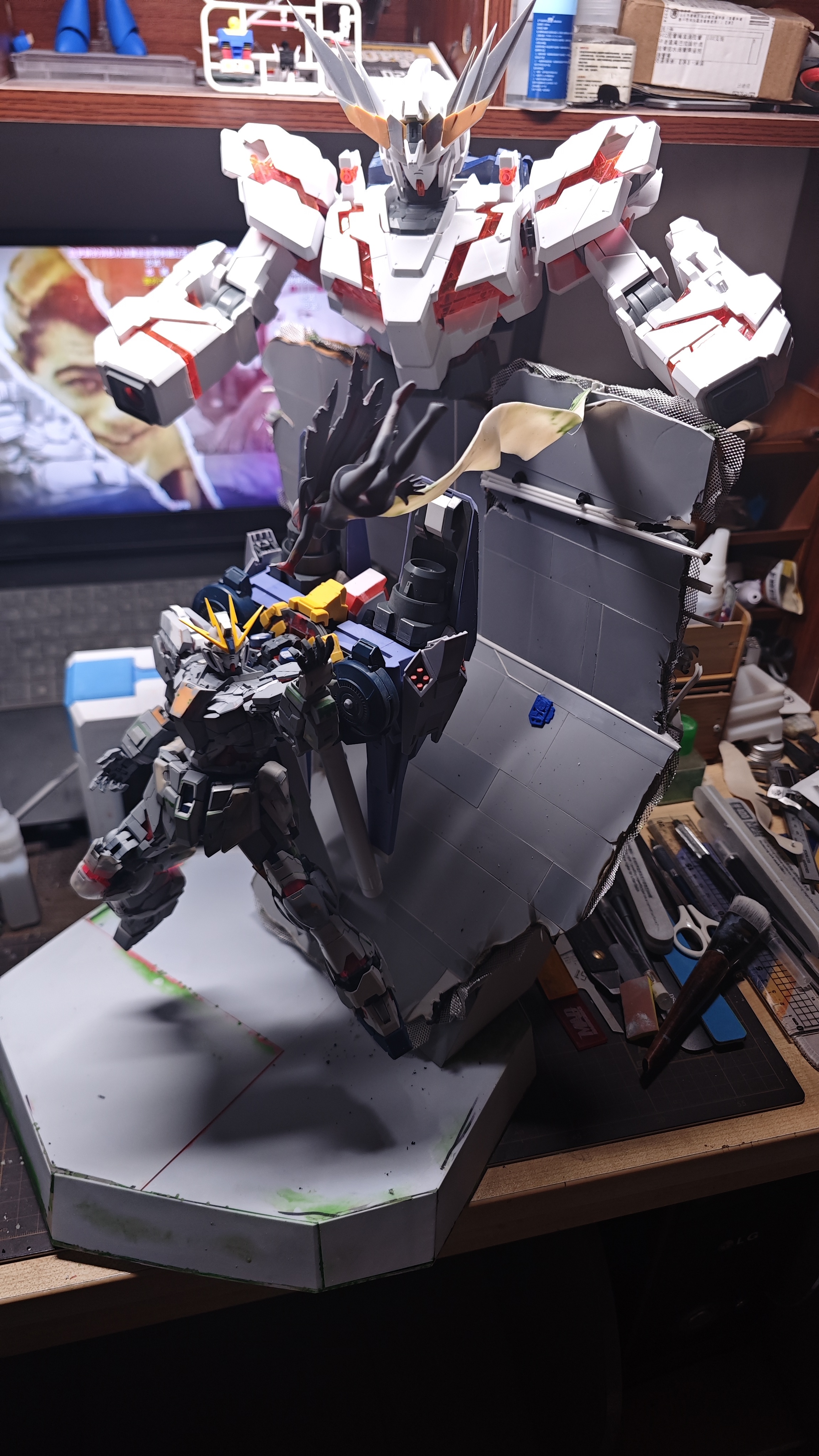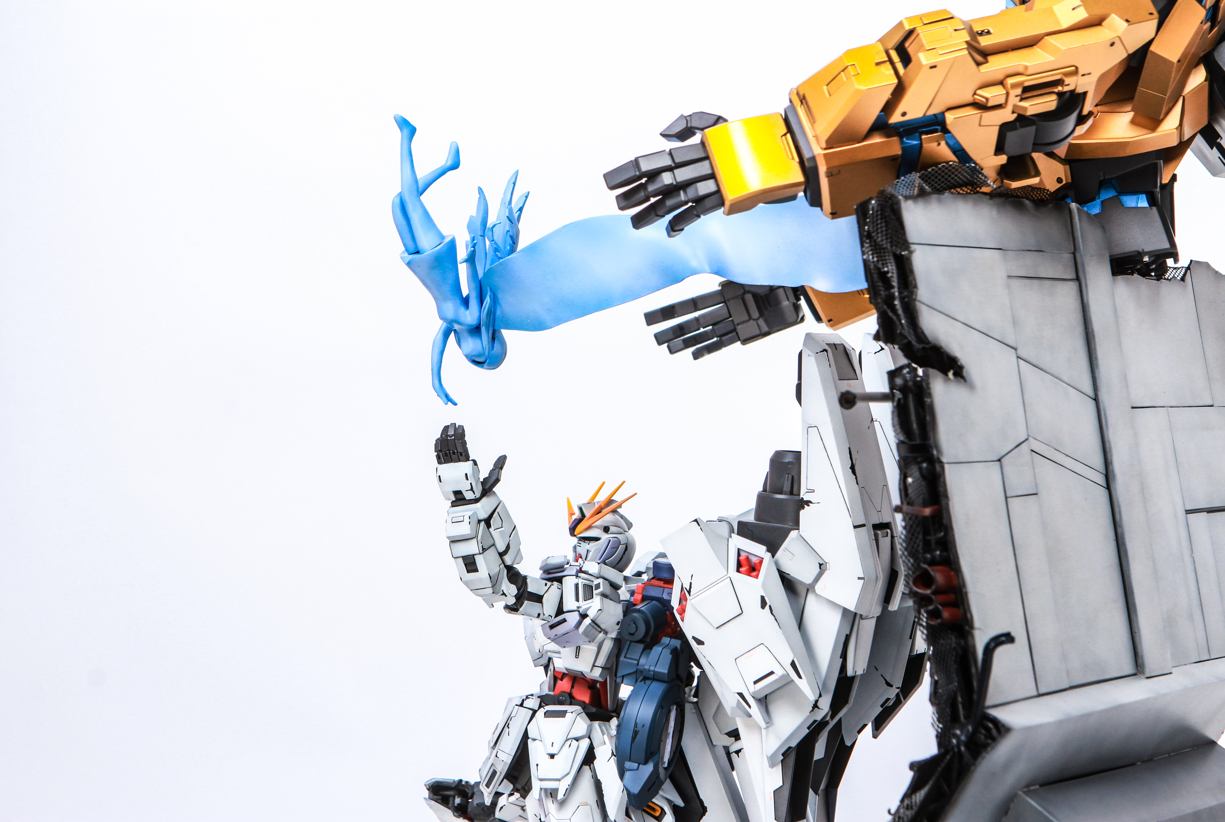 以作品《机动战士高达NT》为世界观背景,架空想象在平行宇宙中,以完全体姿态出击的叙述高达(叙述高达X(phoniex)装备+WAEE-I–00武装)与新吉翁二号机展开最终决战,战斗中由莉塔灵魂寄宿的独角兽高达三号机(菲尼克斯高达)为叙述高达挡下了新吉翁二号机的光束攻击并严重受损,危急关头约拿和莉塔发生共鸣爆发出强大的精神力并击败了新吉翁二号机,而约拿也从菲尼克斯高达中解放了莉塔的灵魂,而作品呈现的即为二人最后告别的一幕。