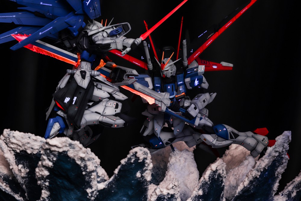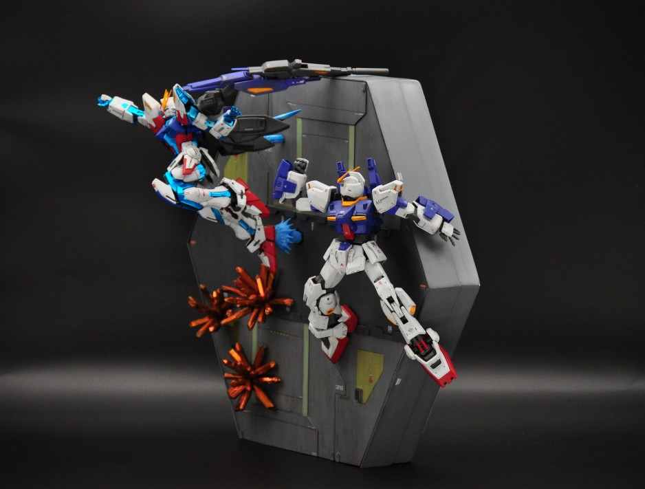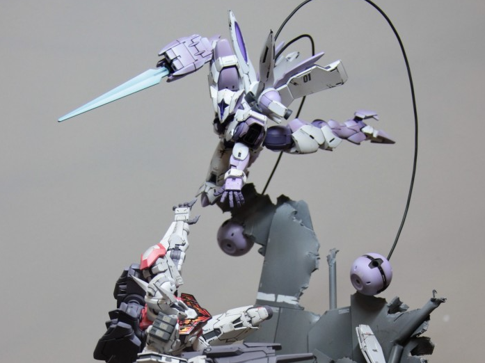 水星的魔女先行回决战场景,两个机体都有改体型加细节,做了一些光影涂装。