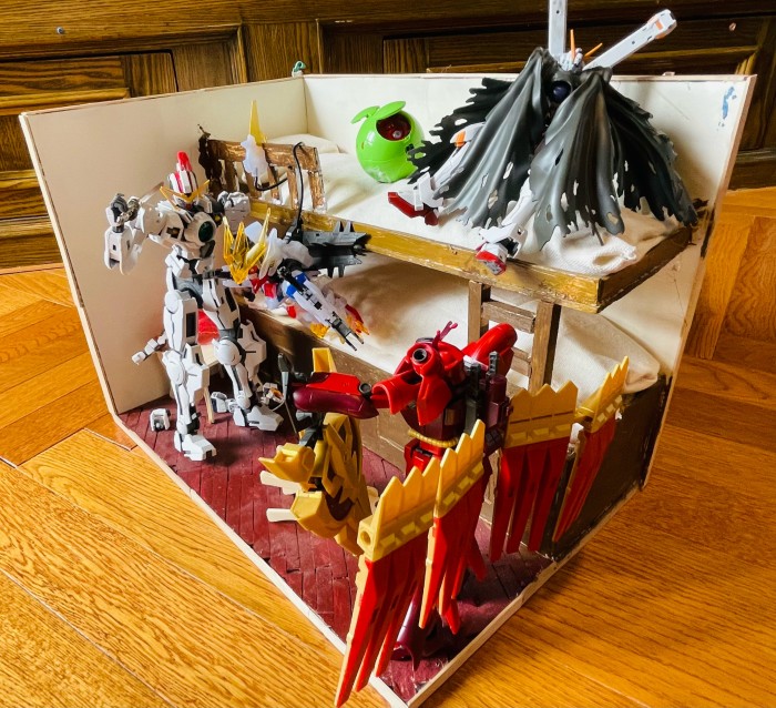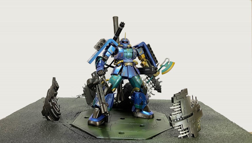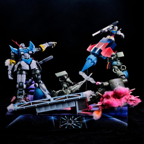 我的父亲是做零售高达产品的,我自小就看着这些塑料小人长大,渐渐也接受父亲的熏陶,喜欢上了模型制作,这次作品主要表达父亲与我一起玩模型的岁月,同时致敬GBWC10周年。希望大家喜欢。