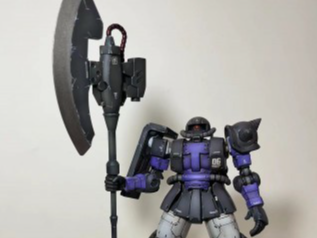 该作品由eg强袭和胶板改造完成,灵感来源于机甲的凹凸结构,以及偏暗颜色搭配。