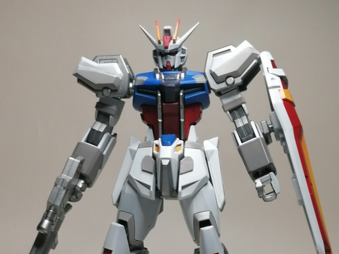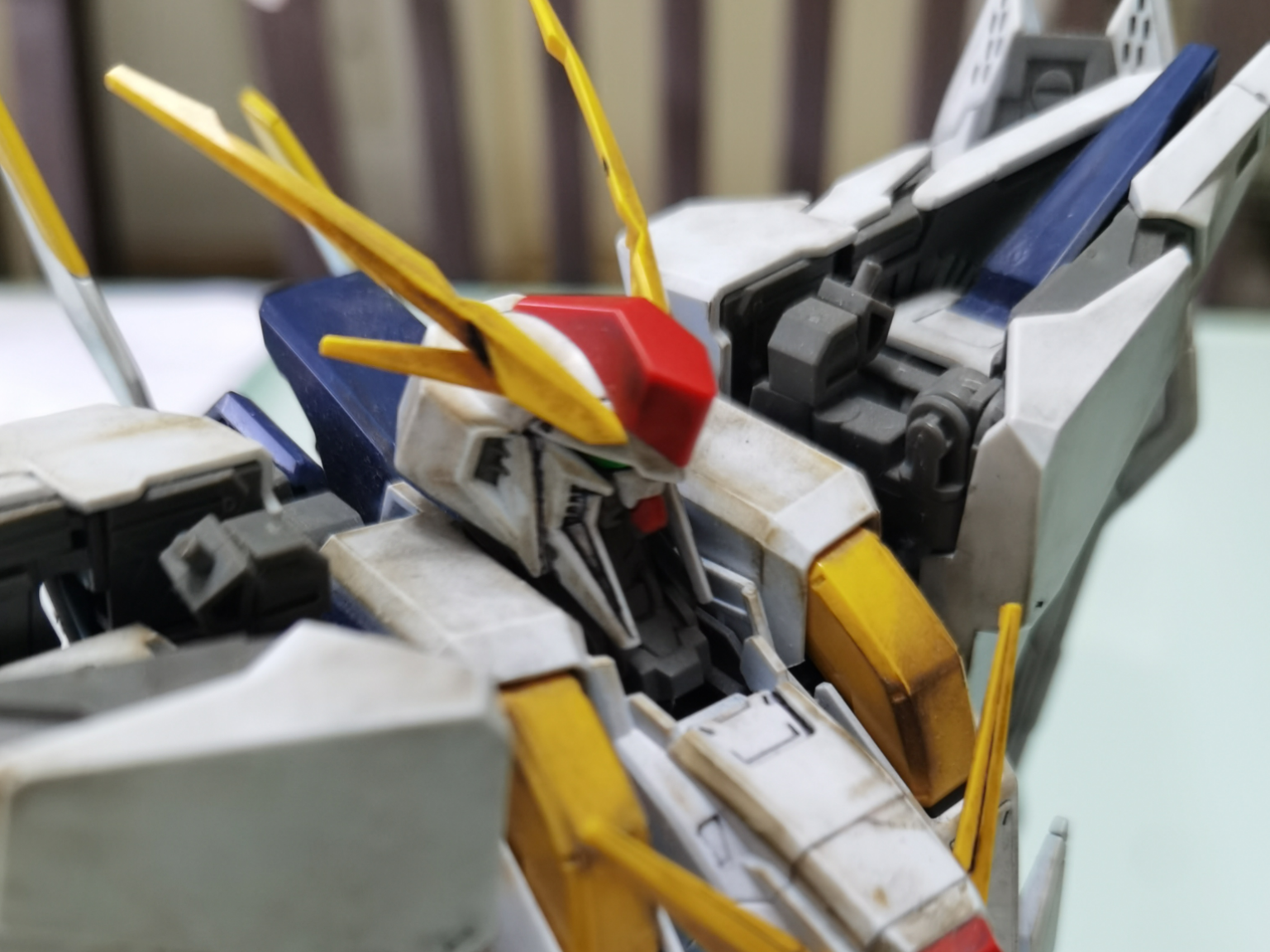 作品用万代海牛1.0高达改造而成,对机身的比例进行调整。原来的机体设计有点圆润,经过锐化处理后机体的菱角分明,更符合现在的审美。追加刻线,增加细节提高机体的精密程度。