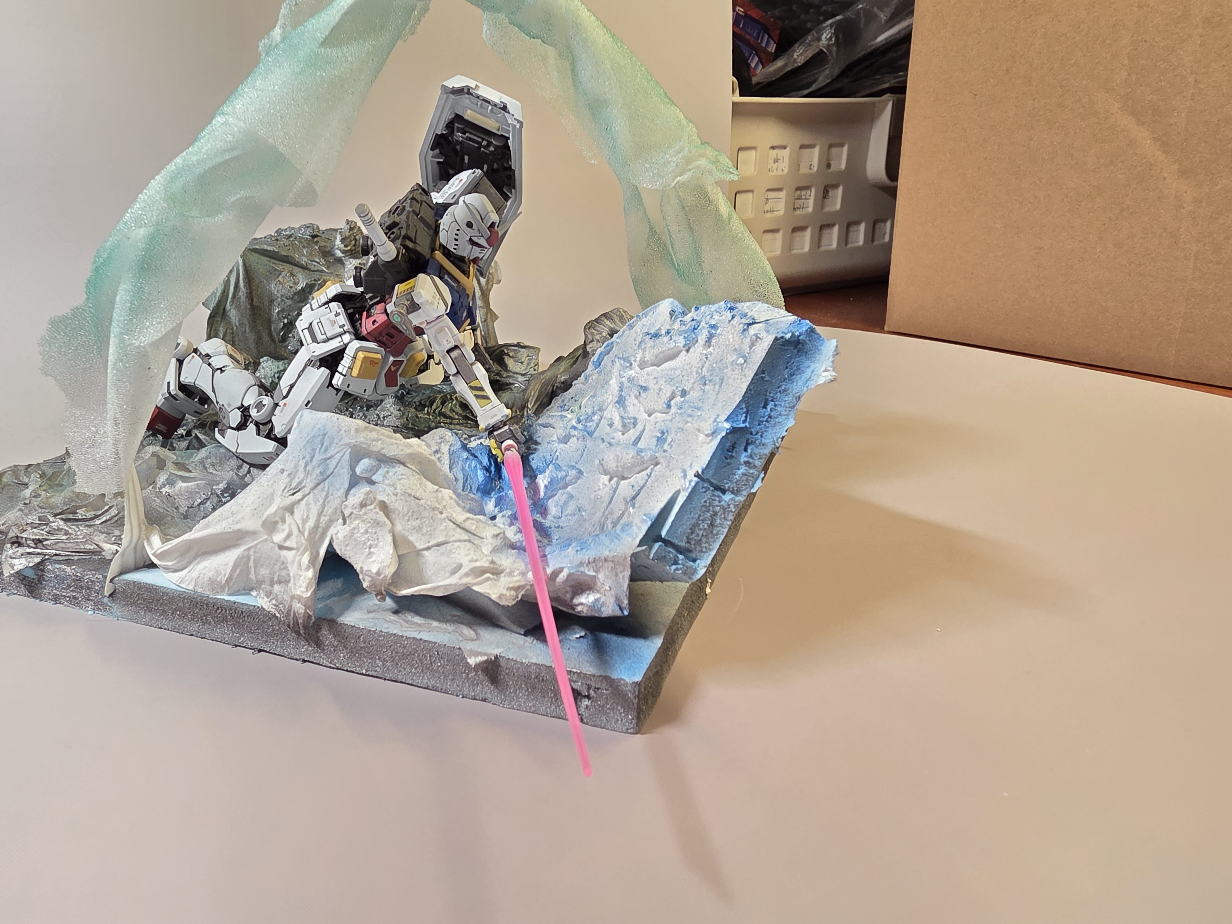 作品讲述了元祖高达在战斗中受到一种神秘力量的影响伸出的右手变成了白高达,右手下方的地面也变成了雪地