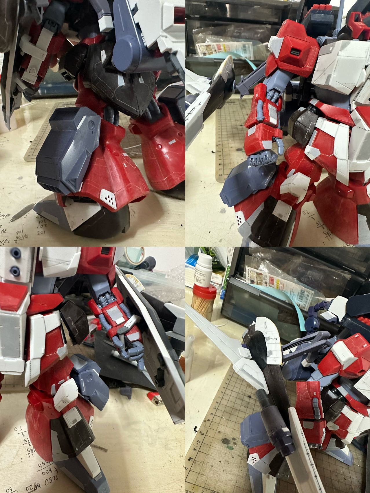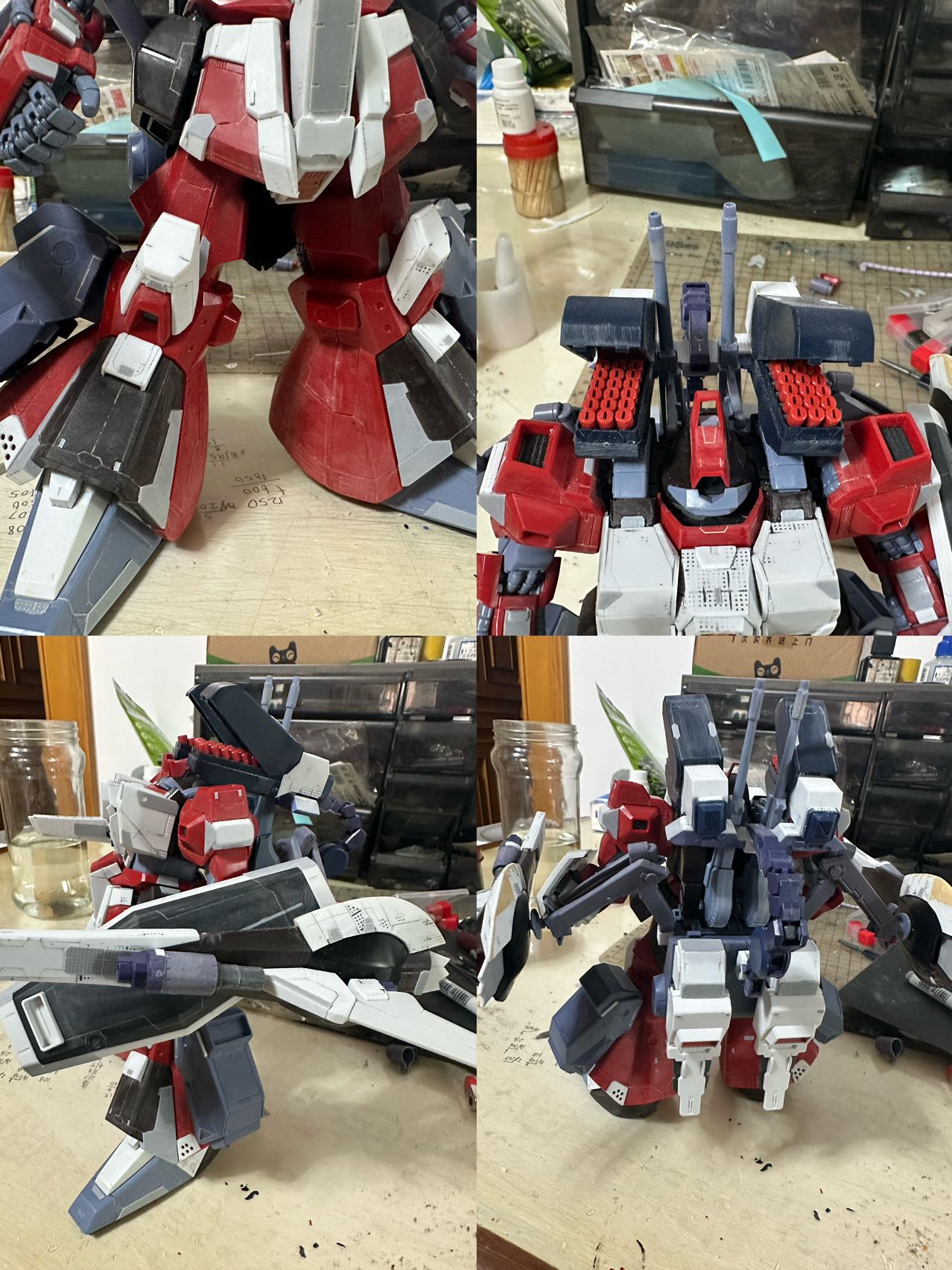主题套件腿部前后合看也无法做无缝,切割部分结构重新粘连,减轻前后合的结构。动画里主要为宇宙站机体大气圈内机动不足,增加点喷口和翅膀加强大气圈内移动力,背包辅助翼造型参考里克迪杰。并按fa概念增加外加,胸口重制增加武装