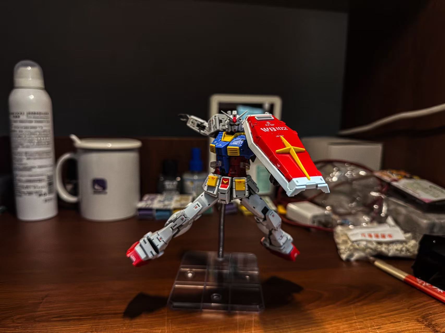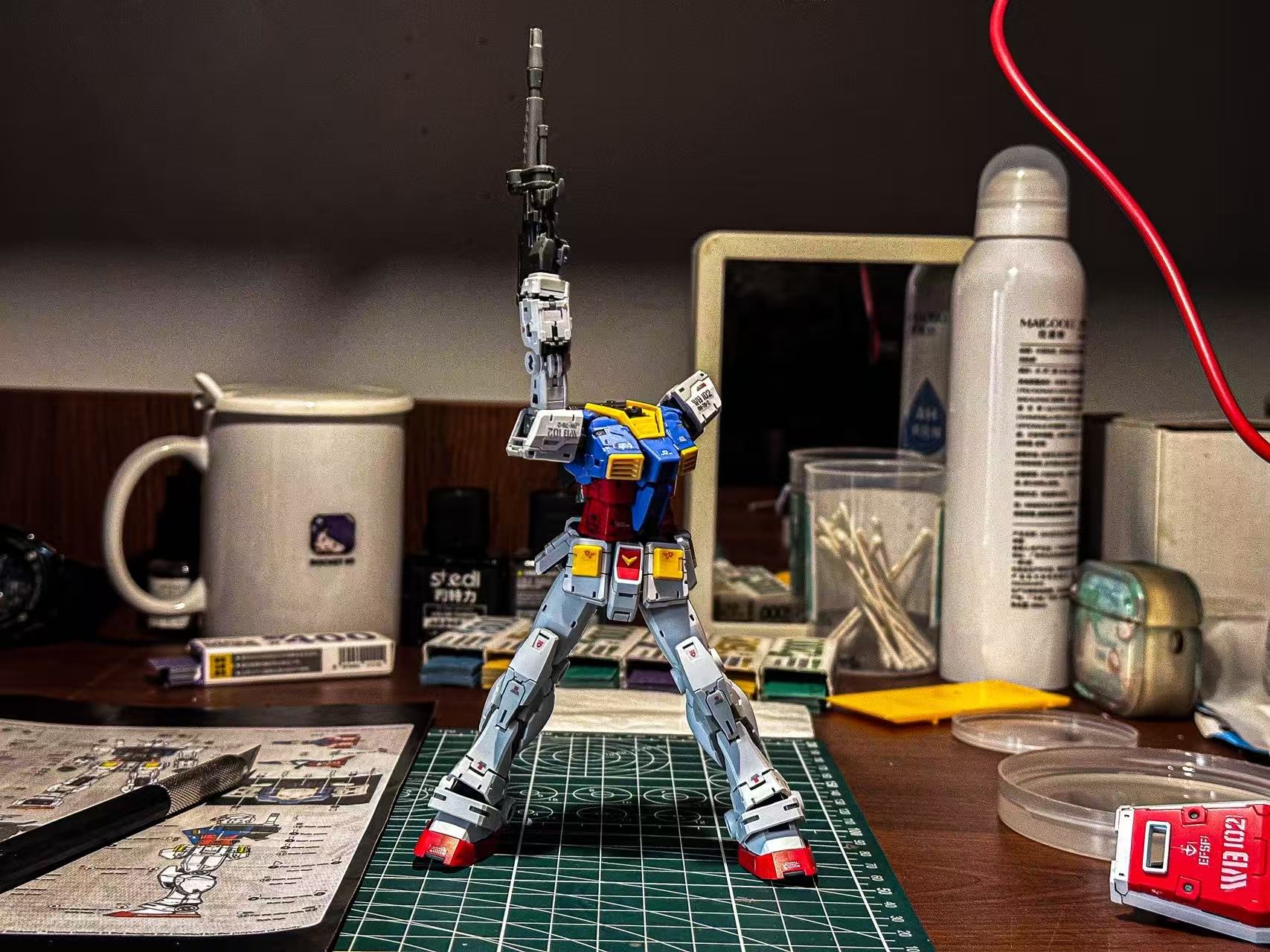 一名学生拼完心心念念的高达后摆各种造型的喜悦